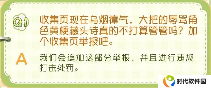 A: 我们会追加这部分举报功能,并且对违规内容进行打击处罚,确保游戏环境的健康和谐。