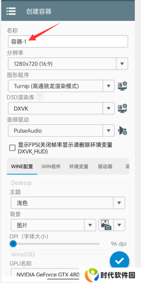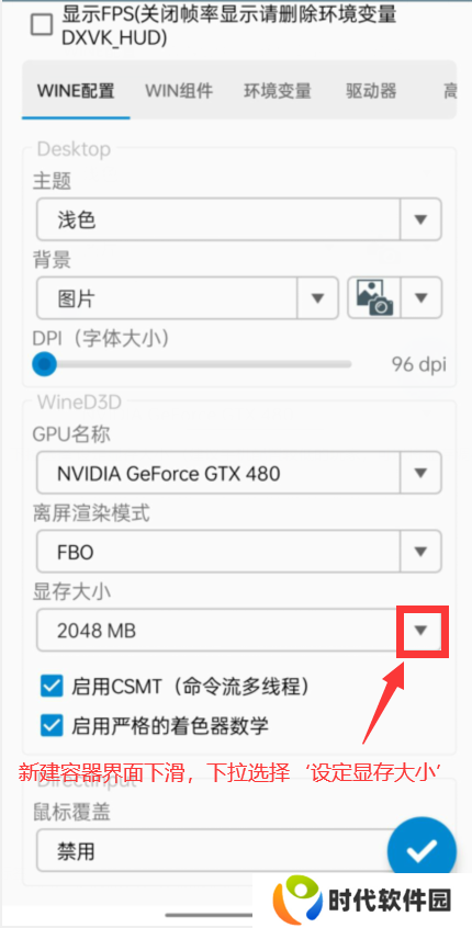 6、新建容器界面下滑,下拉选择‘设定显存大小’(建议手机配置较低的玩家,可以将显存调小);