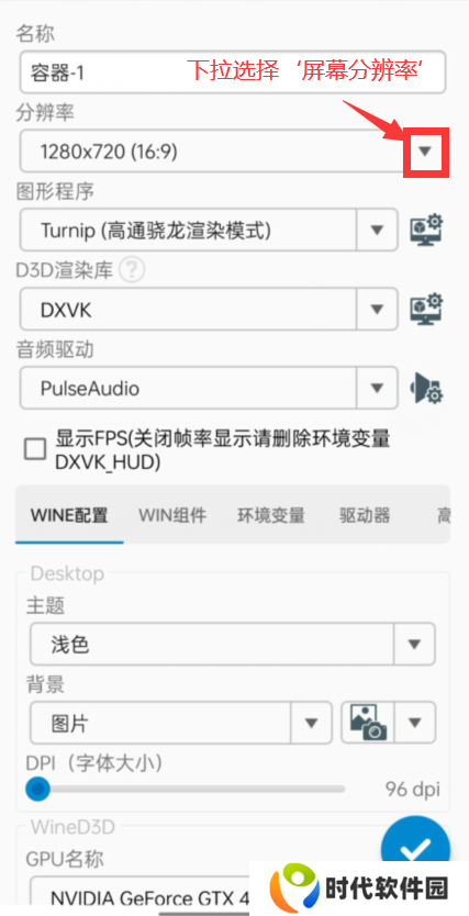 5、下拉选择“屏幕分辨率”(建议手机配置较低的玩家,可以将分辨率调小);