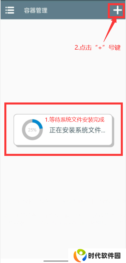 3、启动器安装完毕后,点击右上角“+”号,添加容器;;